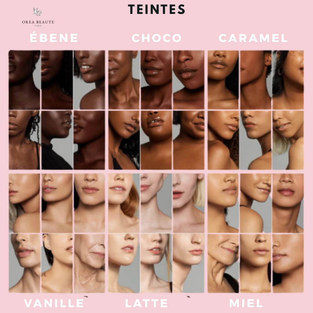 Sous chaque teinte OREA BEAUTÉ se cache une promesse : celle de révéler votre éclat naturel, quelle que soit votre carnation. Peau claire, dorée, caramel ou ébène, nos 6 nuances inclusives célèbrent votre beauté unique.
