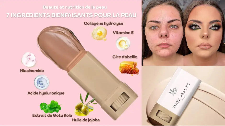 Dites adieu au teint terne avec le fond de teint stick OREA BEAUTÉ, votre allié beauté du quotidien.