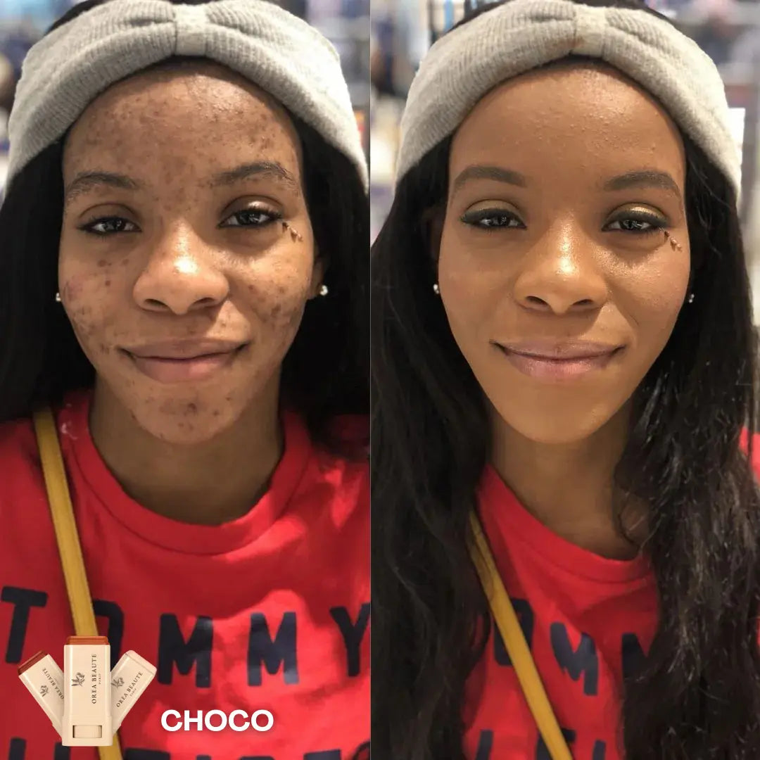 « Les filles à peau foncée me comprendront : la MAJORITÉ des fonds de teint donnent un effet gris ou cendré sur nous. C'est juste horrible. OREA respecte vraiment ma carnation ébène. La teinte est parfaite, pas de sous-ton gris, et elle unifie mon teint sans masquer mon éclat naturel. Mes taches d'hyperpigmentation sur le front et les tempes sont complètement gommées. Je me sens tellement belle et confiante maintenant. Merci OREA de vraiment penser à NOUS !»
